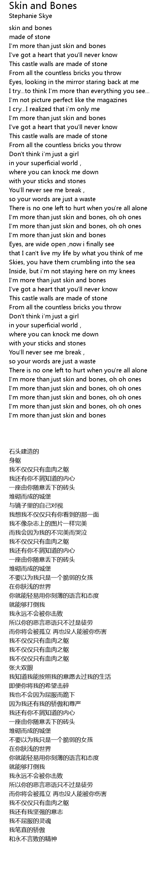 I'm more than just skin and bones, oh oh ones |