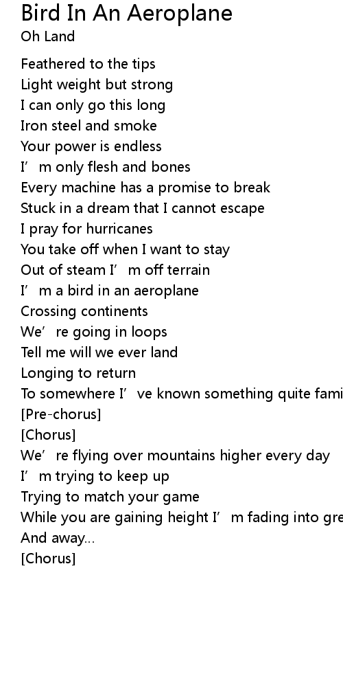 | I' m a bird in an aeroplane | |