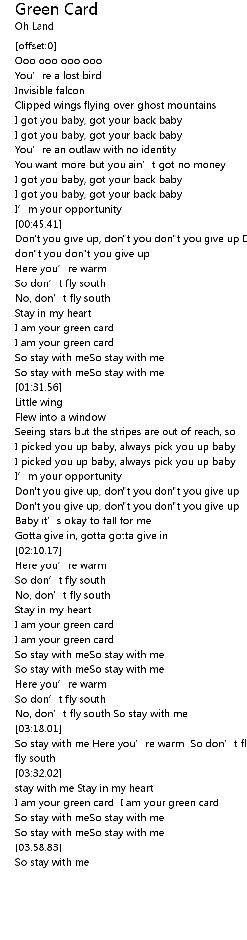| [03:39.74] | I am your green card I am your green card |