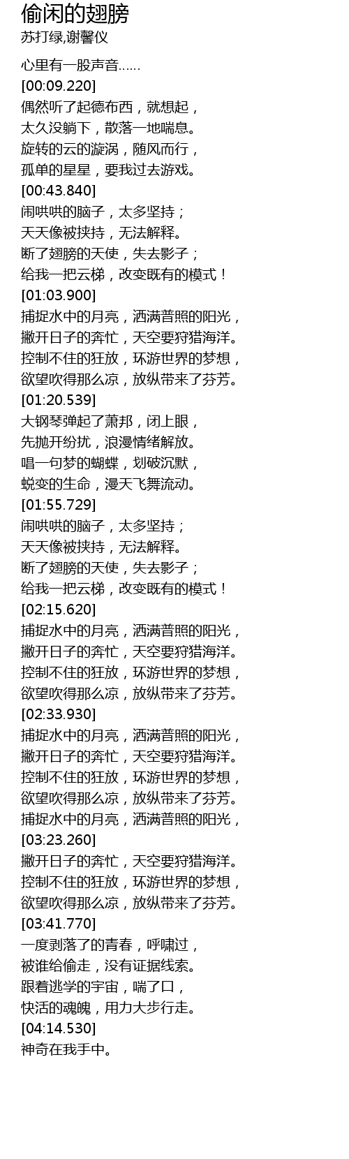 | [01:42.9] | 先抛开纷扰,浪漫情绪解放。 |