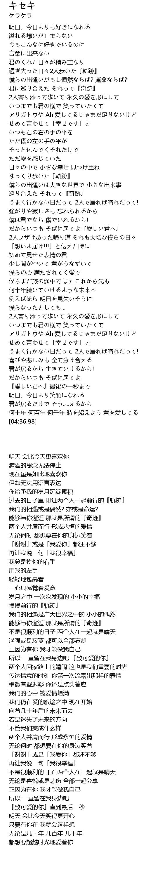 | [00:53.09] | 君に巡り合えた それって『奇跡』 |