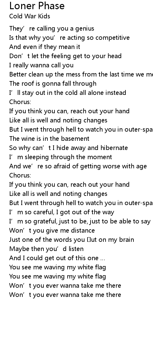 | You see me waving my white flag | |