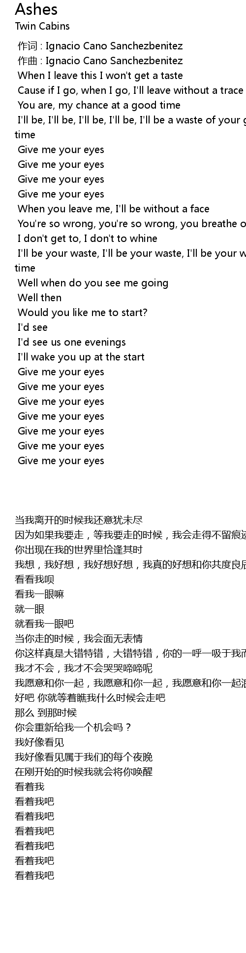 | [03:06.097] | Give me your eyes |
