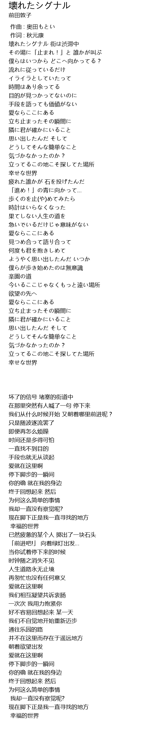 | [00:29.88] | 壊れたシグナル 街は渋滞中 |