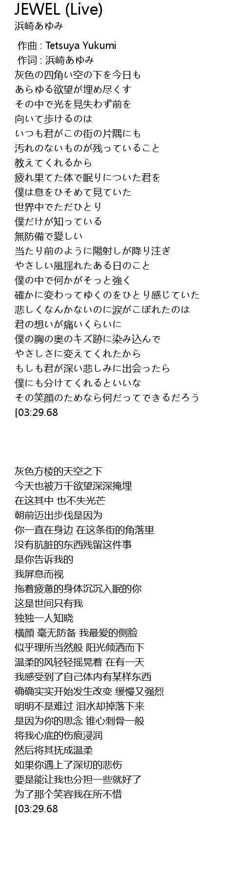 | [00:01.00] | 作词 : 浜崎あゆみ |