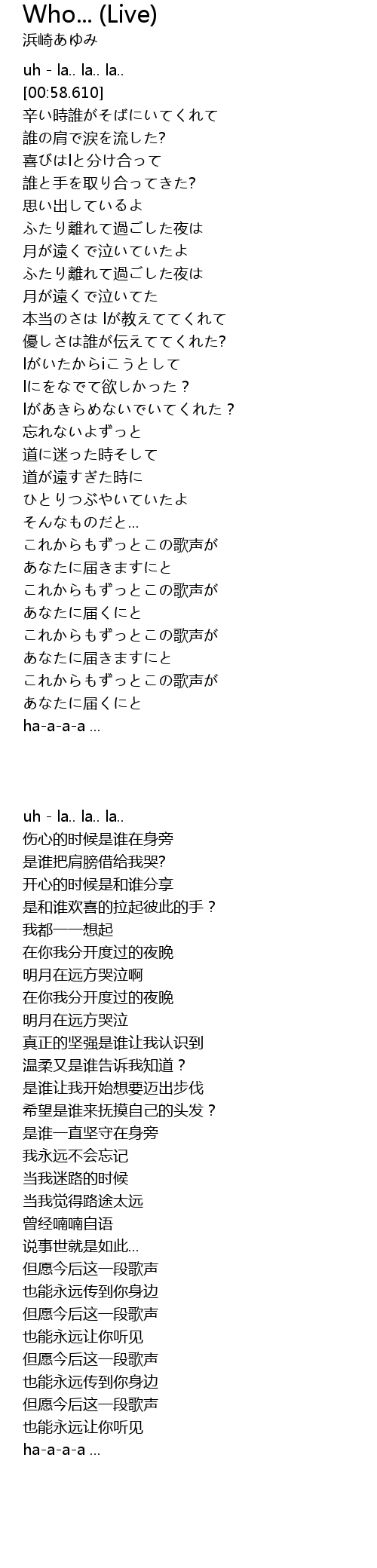 | 歌曲 | Who... (Live) |