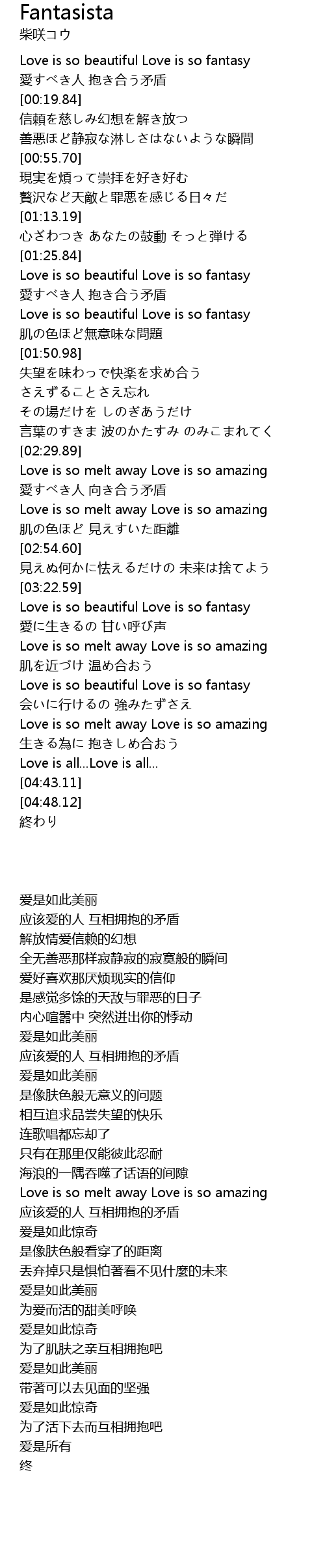 | [03:24.47] | Love is so beautiful Love is so fantasy |