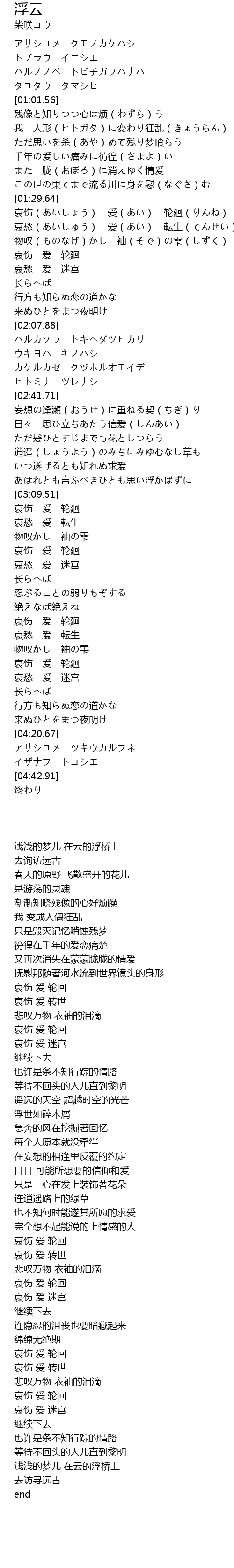 | [01:33.22] | 哀愁(あいしゅう) 爱(あい) 転生(てんせい) |