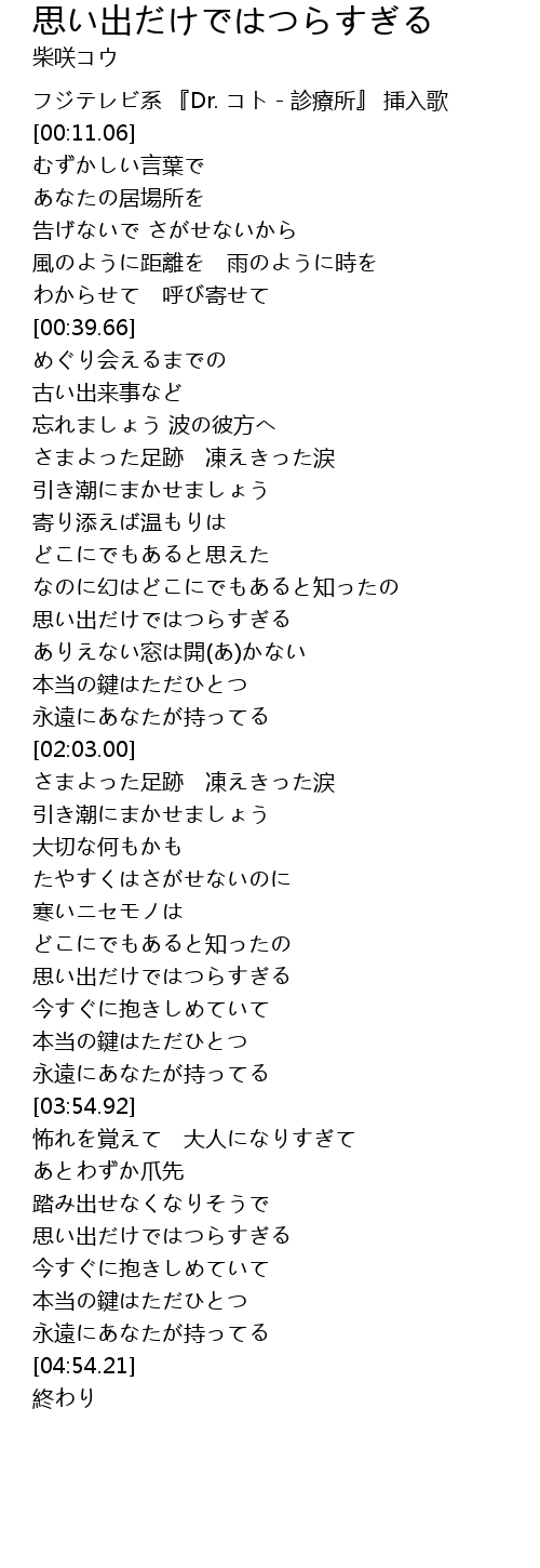 | [00:03.06] | フジテレビ系 『Dr. コト-診療所』 挿入歌 |