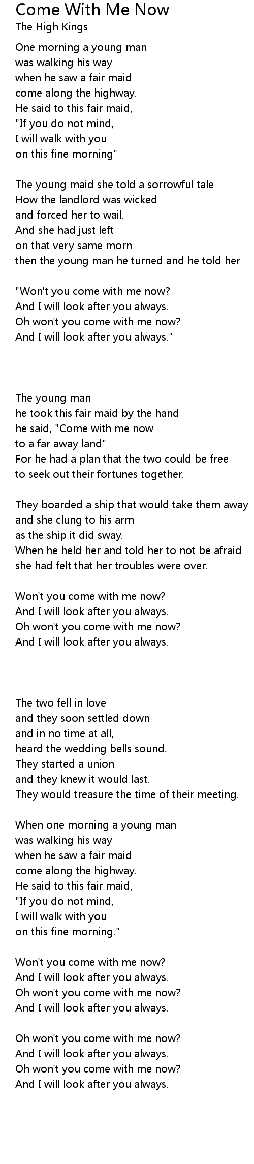 Oh won't you come with me now? |