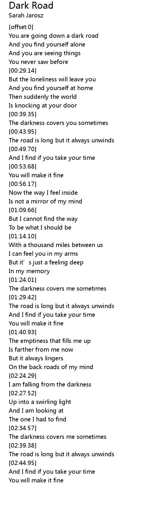 | [00:45.85] | The road is long but it always unwinds |