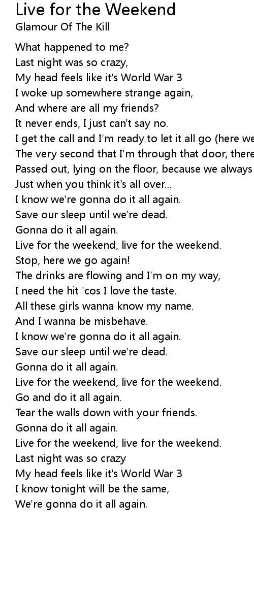 Live for the weekend, live for the weekend. |