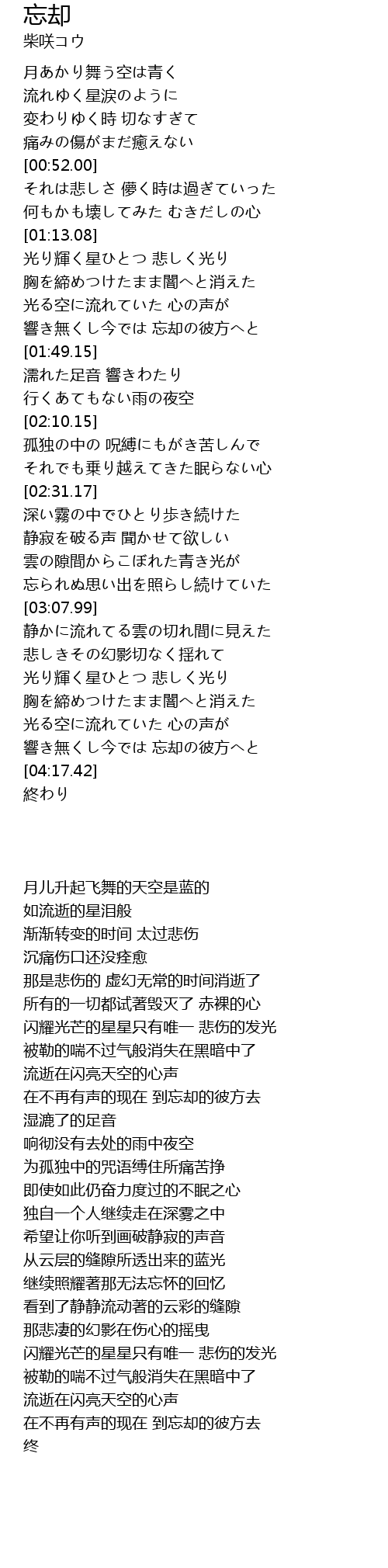 | [00:52.95] | それは悲しさ 儚く時は過ぎていった |