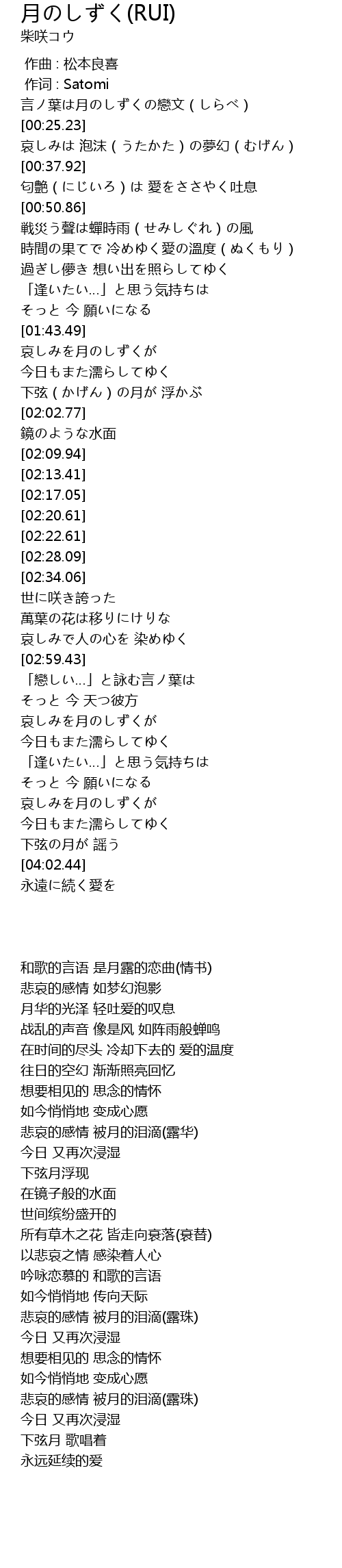| [00:14.24] | 和歌的言语 是月露的恋曲(情书) |