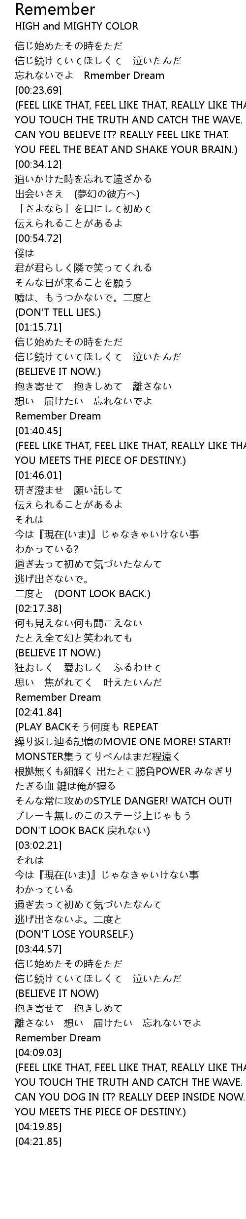| [00:20.50] | 忘れないでよ Rmember Dream |