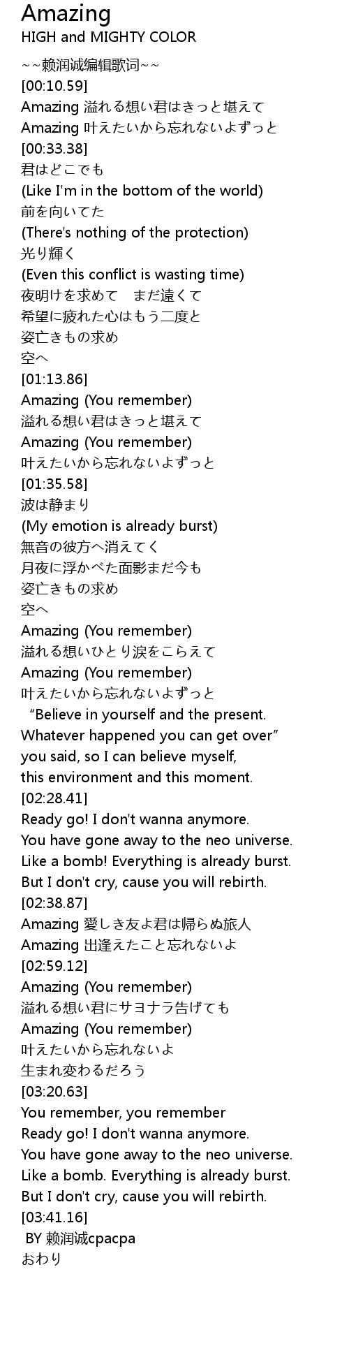 | [02:51.09] | Amazing 出逢えたこと忘れないよ |