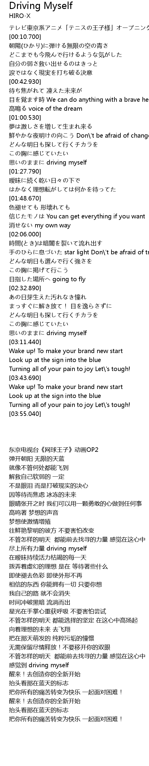| [00:00.170] | 东京电视台《网球王子》动画OP2 |