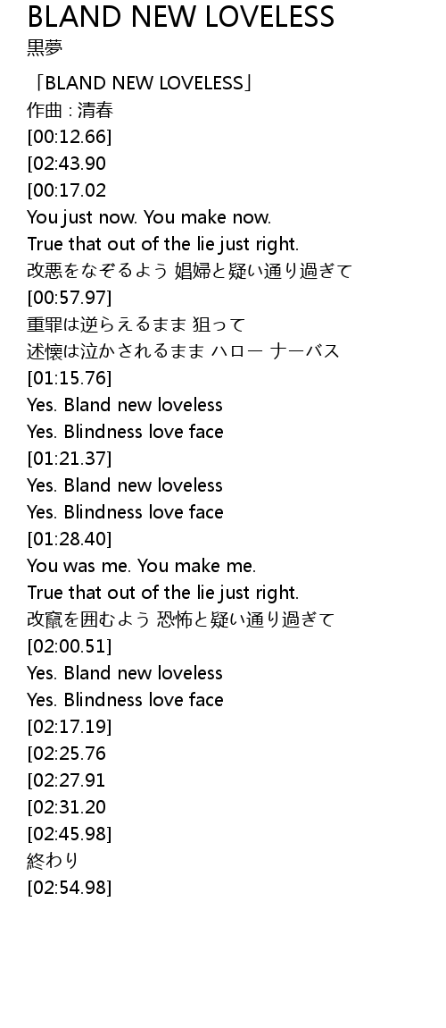 | [00:00.66] | 「BLAND NEW LOVELESS」 |