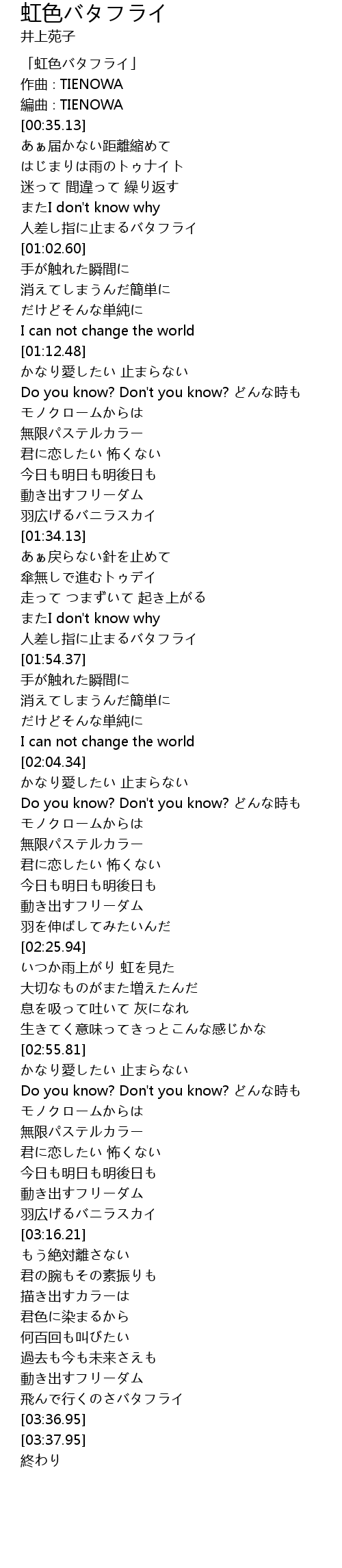 | [00:58.81] | 人差し指に止まるバタフライ |