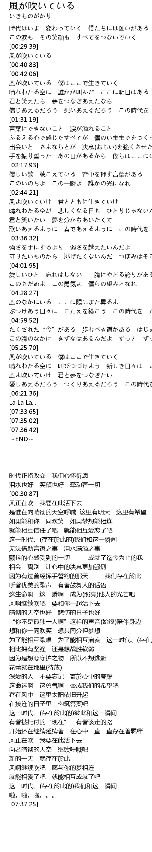 | [05:32.21] | 風が吹いている 僕はここで生きていく |