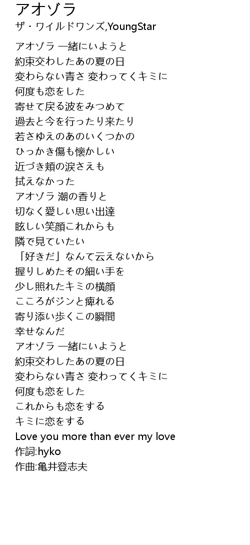 | [02:45.24] | 変わらない青さ 変わってくキミに |