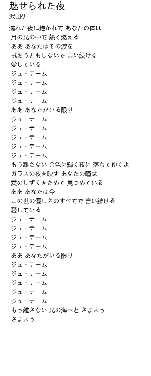| もう離さない 金色に輝く夜に 落ちてゆくよ | |