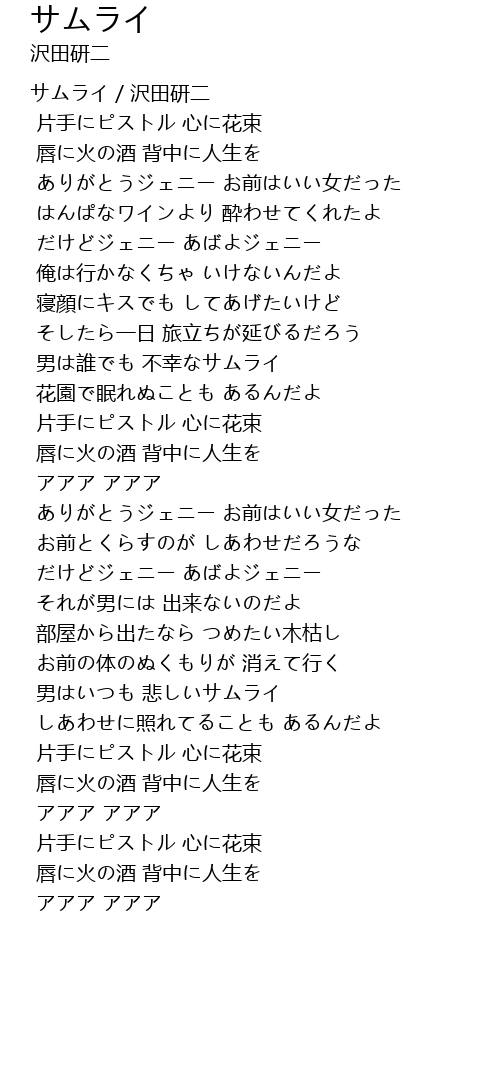 | 歌曲 | サムライ |