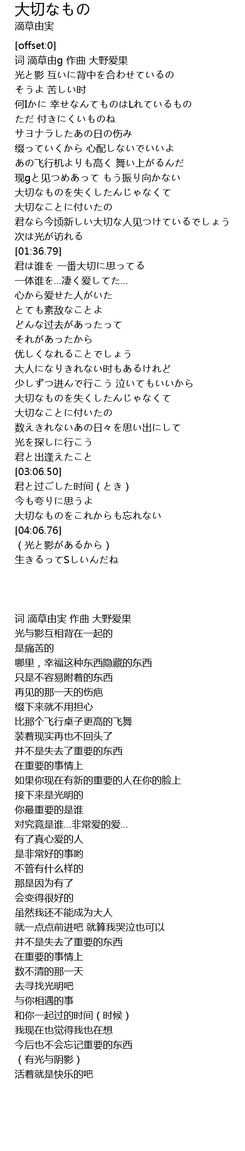 | [00:36.21] | 何Iかに 幸せなんてものはLれているもの |