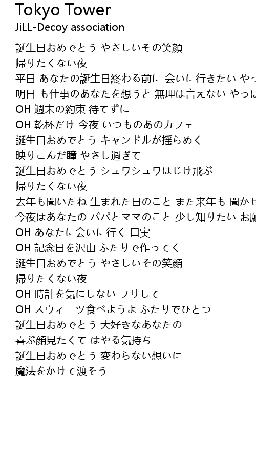 | 歌曲 | Tokyo Tower |