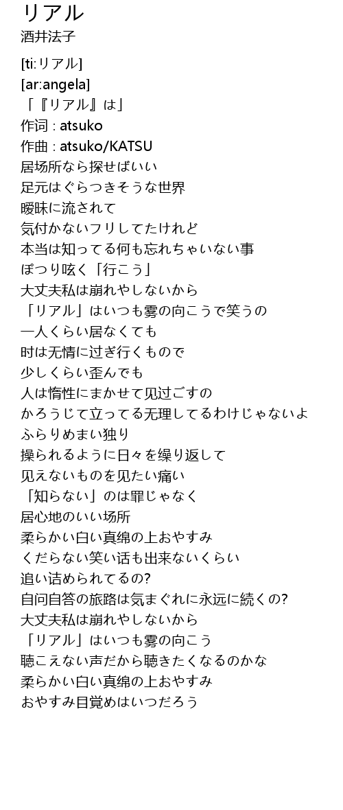 | [03:59.37] | 「リアル」はいつも雾の向こう |
