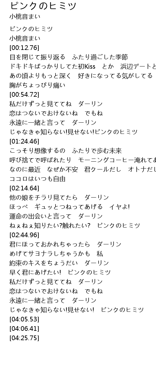 | [03:54.65] | じゃなきゃ知らない!見せない! ピンクのヒミツ |