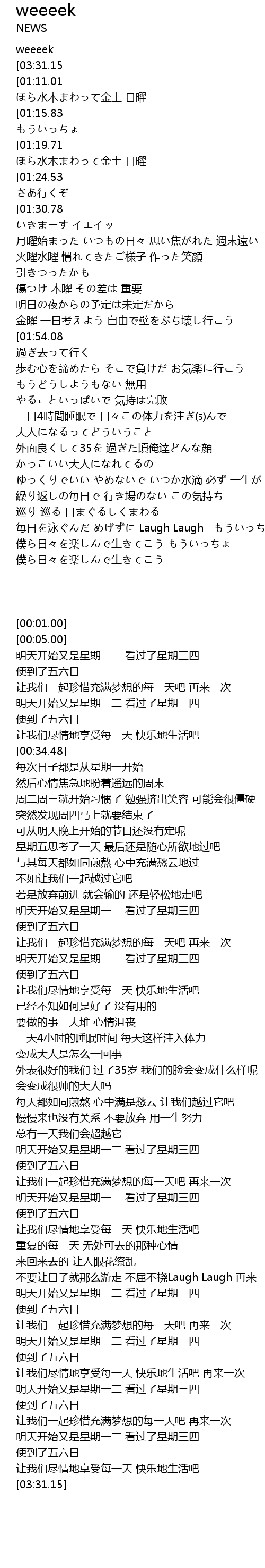 | [00:05.00][03:31.15] | NEWS-weeeek |