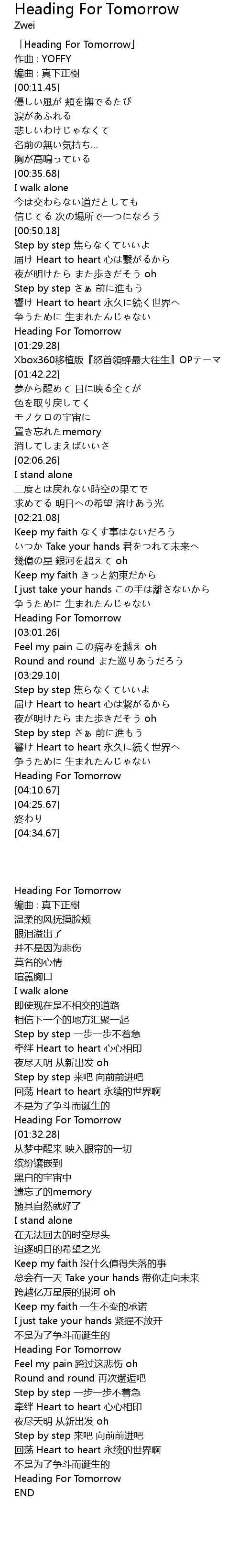| [00:00.45] | Heading For Tomorrow |