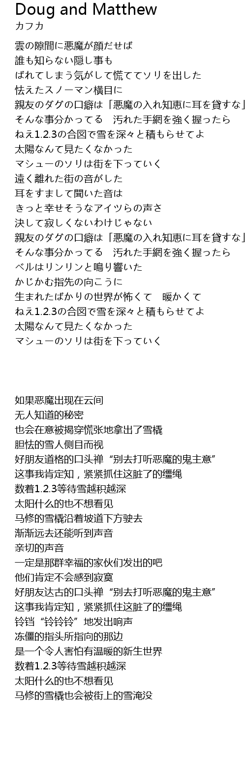 | [00:38.75] | 好朋友道格的口头禅“别去打听恶魔的鬼主意” |