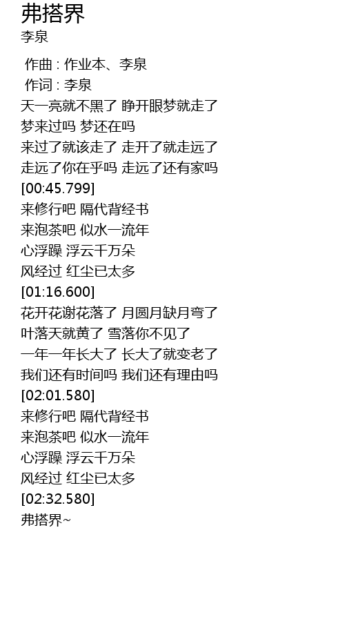 | [00:01.00] | 作词 : 李泉 |