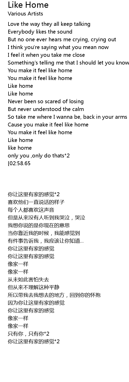 You make it feel like home*2 |