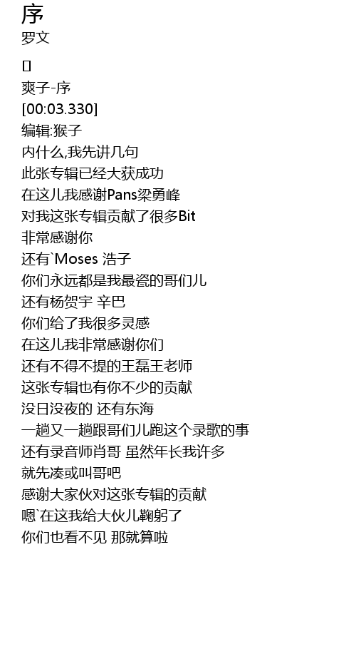 | [01:06.430] | 感谢大家伙对这张专辑的贡献 |