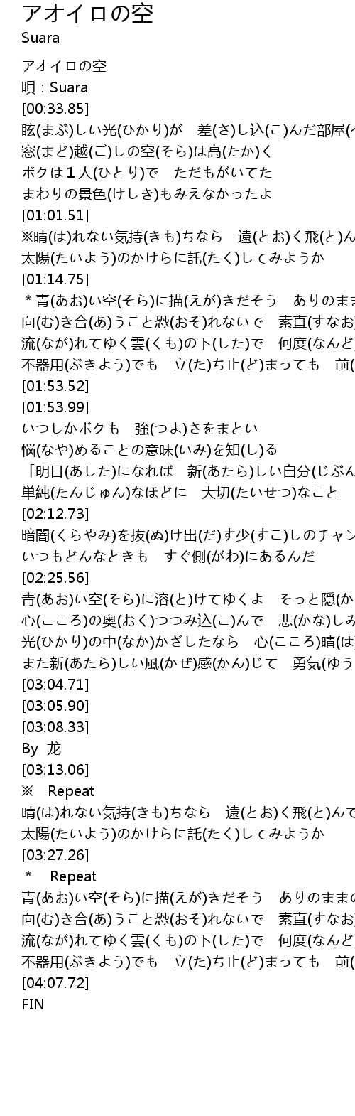 | [00:10.16] | アオイロの空 |