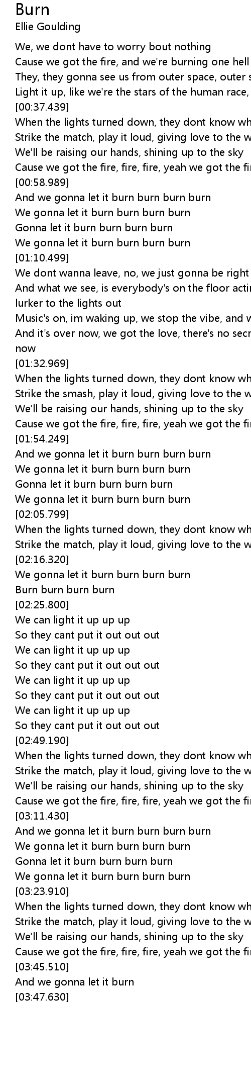 And we gonna let it burn burn burn burn |