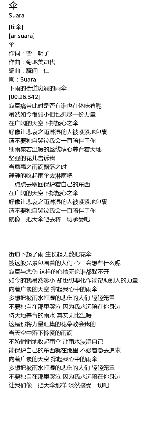 | [02:57.742] | 向着广袤的天空 撑起我心中的雨伞 |