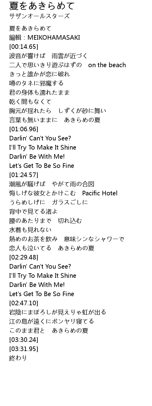 | [00:59.65] | 言葉も無いままに あきらめの夏 |