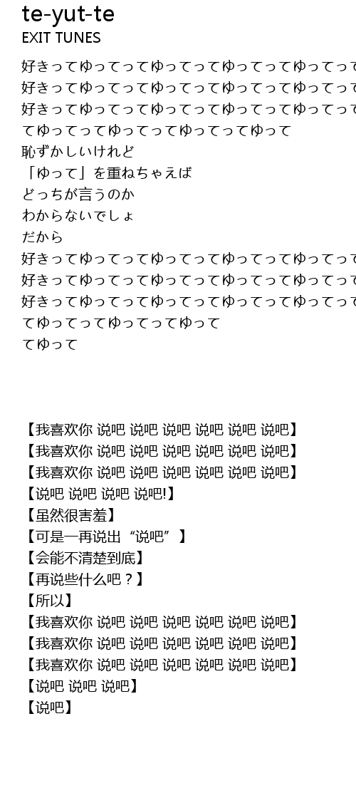 | [00:55.20] | 好きってゆってってゆってってゆってってゆってってゆってってゆってってゆって |