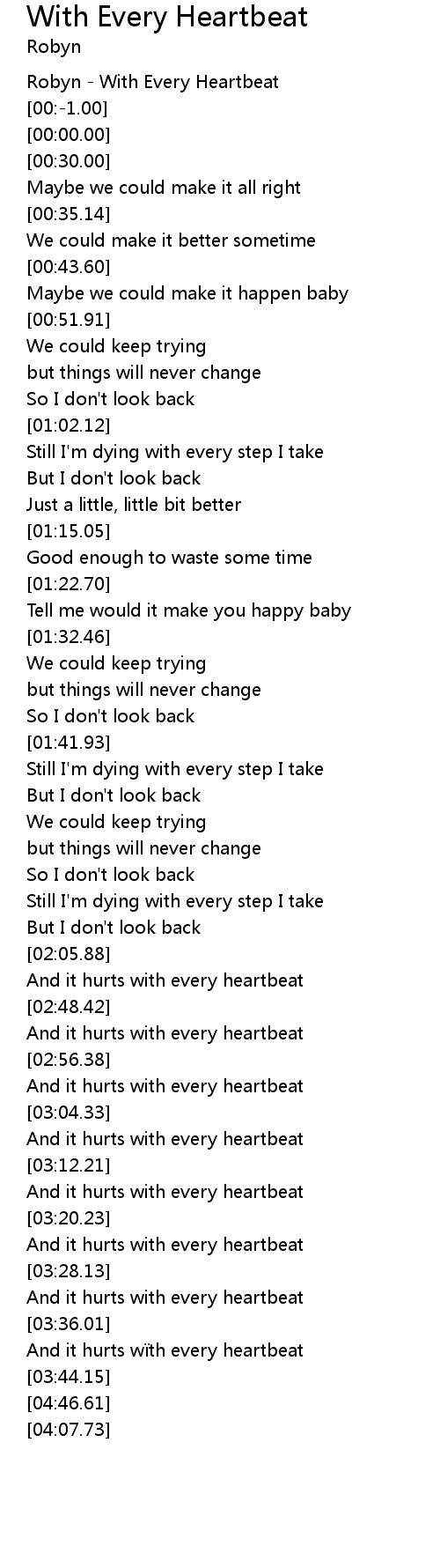 | [00:-2.00] | Robyn - With Every Heartbeat |