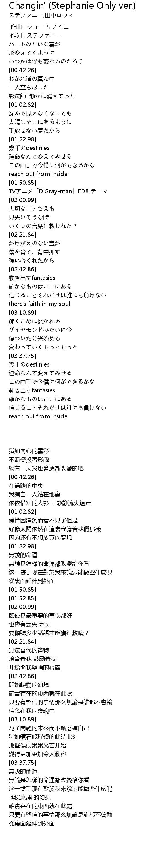 | [03:44.76] | 無論是怎樣的命運都改變给你看 |