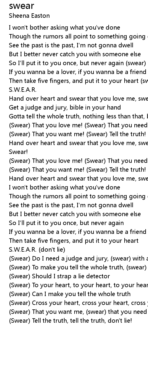 (Swear) That you want me, (swear) that you need me, (swear) that you love me |