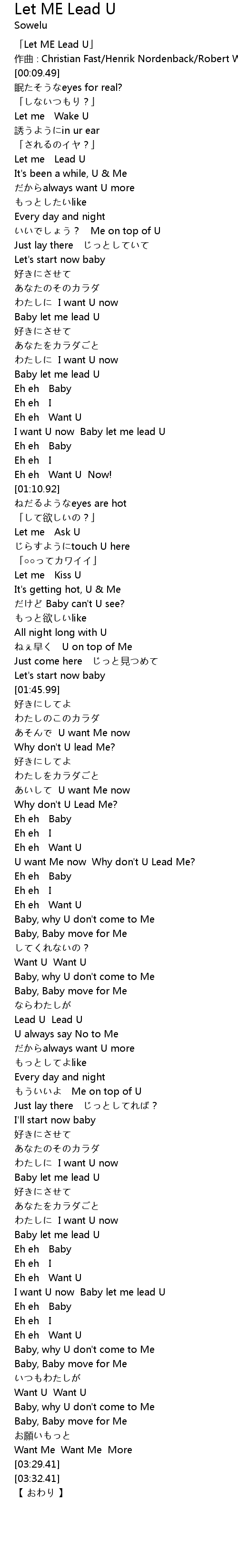 | [02:07.92] | U want Me now Why don' t U Lead Me? |