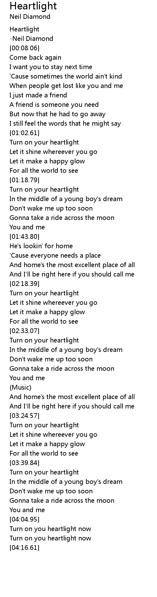 Turn on you heartlight now |