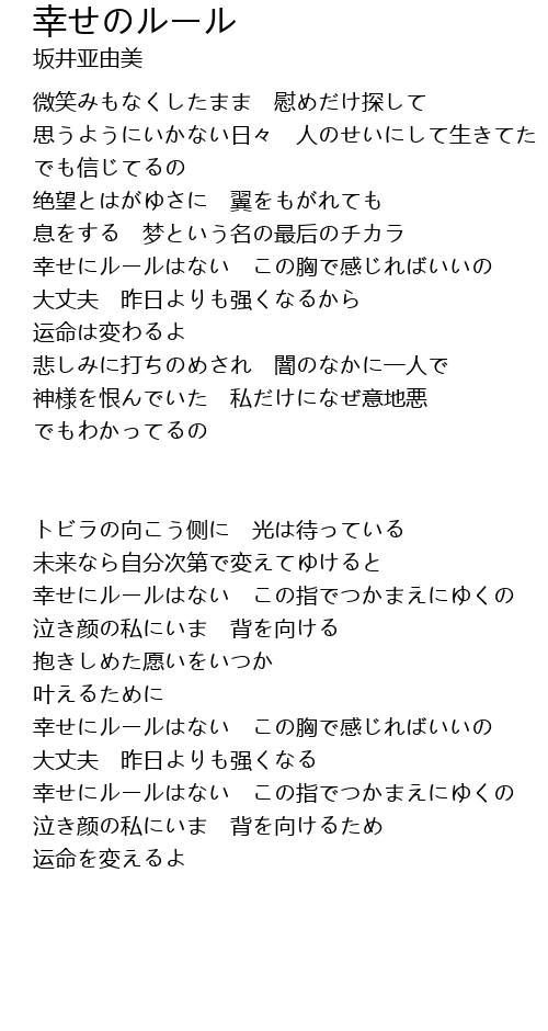 | 幸せにルールはない この胸で感じればいいの | |