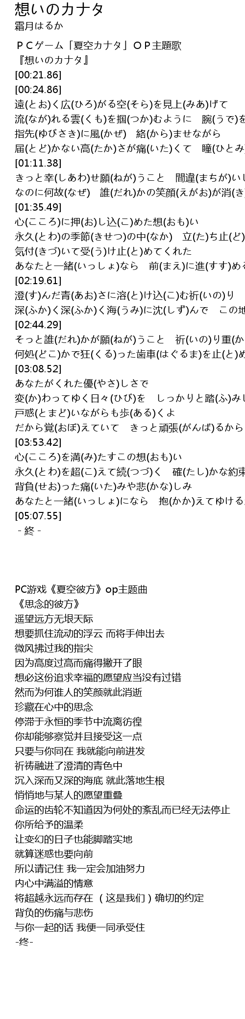 | [00:03.86] | PCゲーム「夏空カナタ」OP主題歌 |