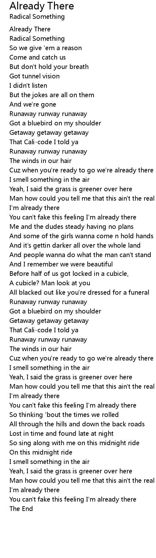 You can't fake this feeling I'm already there |